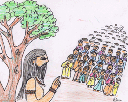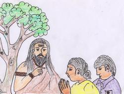 స్వామి పొమ్మనే సరికి రాముకు ప్రాణం లేచి వచ్చింది. వాడు గబగబా నడిచాడు ఉత్సహంగా. అయితే రెండు అడుగులు వేశాడో లేదో, మళ్ళీ పిలిచాడు స్వామి- " నేనిక్కడ ఐదు రోజులు వుంటాను. నువ్వు రోజూ వచ్చి నాలుగు గంటల పాటు నాపక్కన కూర్చోవాలి. అలా అయితేనే మీకు మేలు కల్గేది మరి-" అన్నాడు. వాడు కంగారుగా నోరు విప్పే లోపల వాళ్ళమ్మ " మీరెలా చెప్తే అలాగే స్వామీ, నాలుగు గంటలు ఏం ఖర్మ, రోజంతా మీతోటే ఉండమని పంపుతాను" అన్నది.