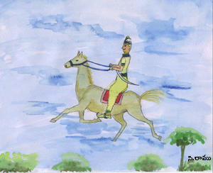 రాకుమారుడు ఆ చీటీని తీసుకొని తన కీలు గుర్రం ఎక్కి బయలుదేరాడు. ఏడు చెరువులూ, ఏడు నదులూ, ఆరు సముద్రాలూ దాటాక, రాకుమారునికి ఒక ముసలి దయ్యం, అనారోగ్యంతో కదలలేక కనిపించింది. రాకుమారుడు జాలితో ఆ దయ్యానికి సాయం చేశాడు. నాలుగు రోజులు అక్కడే ఉన్నాడు కూడా. నాల్గవ నాటి రాత్రి రాకుమారుని జేబులోని చీటీ కిందపడి, ముసలి దయ్యానికి దొరికింది. దయ్యం చీటీని చదివి "అయ్యో ! ఇంత మంచి అబ్బాయిని ఎవరో చంపాలని పన్నాగం పన్నారు. అలా జరగడానికి వీలు లేదు. వారినే అంతం చేయాలి" అని, ఆ చీటీని చించేసి, "ఇతన్ని బాగా చూసుకో . నా ప్రాణాలను ఇతని చేతికిచ్చి పంపు" అని మరో చీటీ రాసి రాకుమారుని జేబులో ఉంచింది.