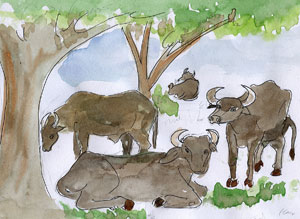 అప్పటి నుండి దున్నపోతులన్నీ వికారంగా తయారయ్యాయి. వాటి కొమ్ములు దేనికీ పనికిరాకుండా పోయాయి. అప్పటినుండీ అవి బురదలో పొర్లుతూ, పొలాలు దున్నుతూ ఉండిపోయాయి.