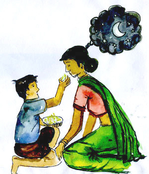 అనగనగా ఒక ఊరు. ఆ ఊరిలో ఒక కుటుంబం. అమ్మా, నాన్న, వారి ఇద్దరి కొడుకులూ. పిల్లలిద్దరినీ తల్లి దండ్రులు ఎంతో ప్రేమగా పెంచి పెద్ద చేశారు. పెద్దవాళ్ళయ్యాక, కొడుకులిద్దరికీ పెళ్ళిళ్ళూ చేశారు. కొడుకులిద్దరూ మంచి స్థితిలోనే ఉన్నారు. తల్లి తండ్రులు ఇప్పుడు ముసలివాళ్లయ్యారు. వారి శక్తులు సన్నగిల్లాయి. పొట్టకూటికోసం కొడుకుల పైననే ఆధారపడాల్సి వస్తున్నది. చిన్నవాడు తల్లితండ్రుల్ని, బాగా చూసుకొనేవాడు. పెద్దవాడు మాత్రం వారిని అస్సలు పట్టించుకొనేవాడు కాదు.