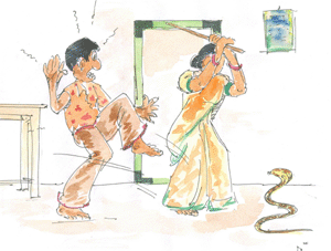 మా బావ వీరుడు మంచం దిగడు చీమంటే చాలు చిందులేస్తాడు ఎలకంటే చాలు ఎగిరి దుంకుతాడు పామంటే చాలు పారిపోతాడు