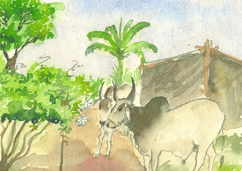 అనగనగా ఒక గ్రామం. ఆ గ్రామంలో ఒక పెద్ద మోతుబరి రైతు ఉండేవాడు. ఆయనకు చాలా పొలం ఉండేది. పెద్ద ఇల్లూ, ఆ ఇంటికి వెనుకనే పెద్ద పెరడూ ఉండేది. ఆ పెరట్లో రకరకాల పూలమొక్కలు ఉండేవి. పెరడుకు పక్కగా ఒక పశువుల పాకకూడా ఉండేది. ఆ పాకలో వాళ్లు ప్రతిరోజూ తమ ఎద్దులను కట్టేసేవారు.