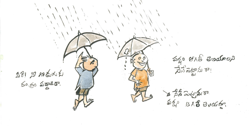 రాము: ఒరేయ్ రాజూ! నువ్వు పట్టుకున్న గొడుక్కి రంధ్రం పడిందిరా!