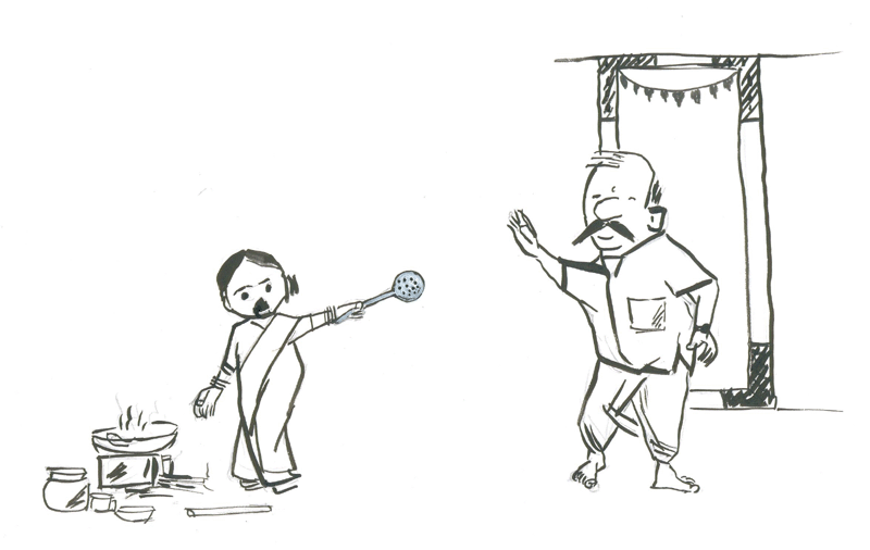 భార్య: అంత వద్దులే గానీ, ముందు కాస్త ఈ పొయ్యి వెలిగించి చూపండి చాలు!