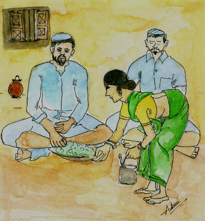 కానీ ఇంటి యజమానురాలికి మాత్రం ముల్లాగారి మాటలు మింగుడుపడలేదు. అందుకని ఆవిడ ముల్లాగారికి వడ్డించేటప్పుడు, ప్లేటులో ముందుగా కూరవేసి, దానిపైన, పూర్తిగా కప్పిపెడుతూ, అన్నం పెట్టుకొని తీసుకువచ్చింది. మిగిలిన వాళ్లందరి ప్లేట్లలోనూ కూర ఉంది - తన కంచంలో తప్ప!