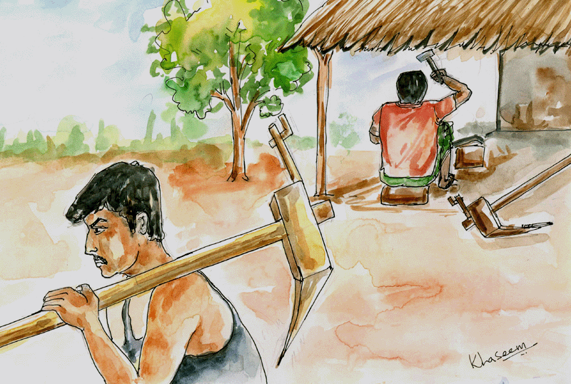ఒక ఊరిలో ఒక కమ్మరి ఉండేవాడు. అతను ఒకసారి, ఒకే కొలిమిలో రెండు మంచి నాగళ్లను తయారుచేశాడు.