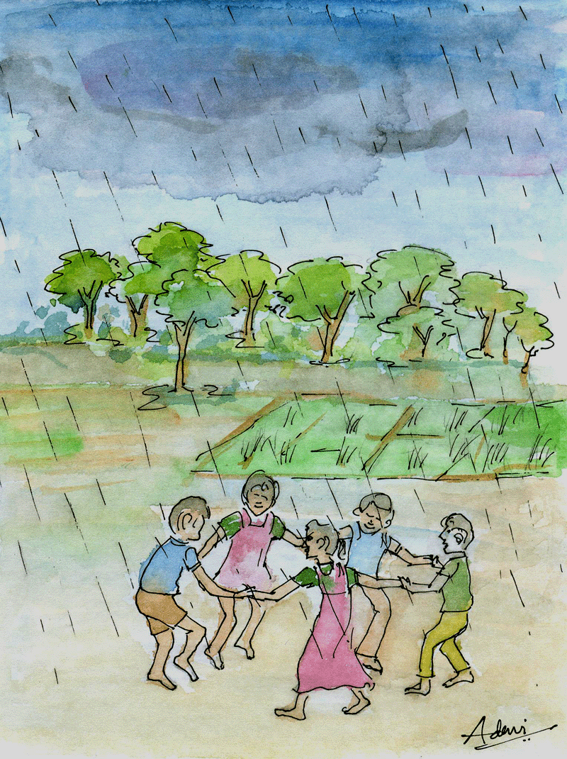 వానదేవుడొచ్చినాడు వాసుదేవా చెరువులన్ని నిండినాయి చెన్నకేశవా మడులన్ని దున్నినాము మల్లికార్జునా ఎరువంతా వేసినాము ఎర్రిస్వామీ వరినాట్లు వేసినాము వరదరాజూ వరిపంట బాగొచ్చె వన్నూరప్పా కరువులే పోయినాయి కాశినాథా కేరింతలు కొట్టినారు బాలలంతా