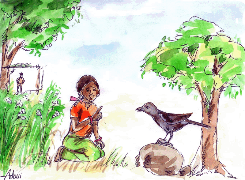 కాకీ కాకీ కవ్వరకాకీ మా చేన్లో వాలొద్దు మల్లె పువ్వు తుంచొద్దు మా నాన్న బీదోడు మాయమ్మ రాక్షసి నేనేమో పుట్టగోసి!