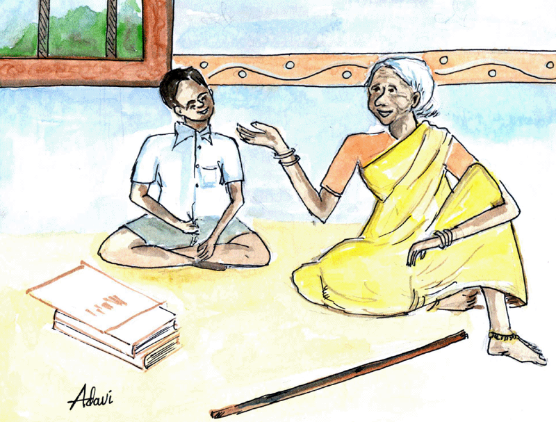 "నారాయణుడు ఉన్నాడు; కానీ ఆయన మనకు కనిపించడు రా నాయనా!" అని చెప్పింది అవ్వ.