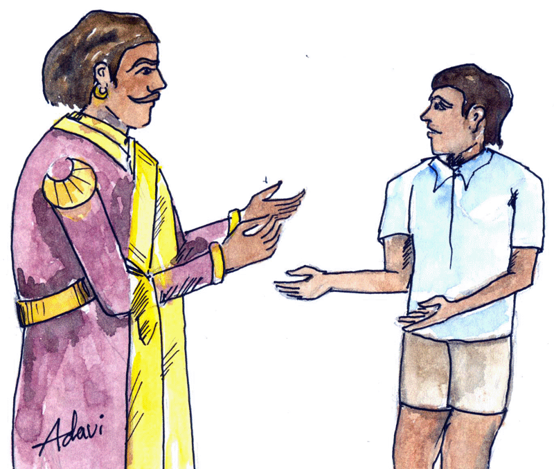 ఆ మాటలకు రాజుగారు "చూడు బాబూ! నేను చాలా సంవత్సరాల క్రితమే ఒక చెరువును తవ్వించాను. నీటితో నిండి, పదిమందికీ ఉపయోగపడాల్సిన ఆ చెరువు, ప్రతి సంవత్సరమూ తెగిపోయి, నిరుపయోగమయి పోతున్నది. ఎన్నిసార్లు మరమ్మత్తులు చేయించినా ఫలితం లేకుండా పోతున్నది. ఎందుకలా అవుతున్నదో అర్థం కావటం లేదు. అదేంచేస్తే బాగౌతుందో నారాయణుణ్ని అడిగి తెలుసుకురా" అని చెప్పాడు. "సరే" అని విష్ణు ముందుకు సాగిపోయాడు.