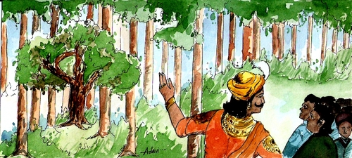 ఒకనాడు ఆ మైదానంలోకి వచ్చిన మహారాజుగారు అక్కడి చెట్లను చూశారు. వాటిని చూడగానే మహారాజుగారికి వాటికలపతో చక్కటి సామాన్లు కొన్నింటిని చేయిద్దామనిపించింది. వెంటనే ఆయన అక్కడి మనుషులను పిలిపించి తన కోరికను చెప్పారు. ఇంకేముంది, రాజావారు చెప్పిన వెంటనే పని మొదలెట్టారు సేవకులు. మైదానంలో నిటారుగా పెరిగిఉన్న చెట్లన్నీ గొడ్డలిపెట్లకు నేలకొరిగిపోయాయి.