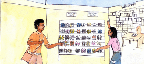 రాము ఆ పక్కగా చాలాసార్లు వెళ్ళాడు. కానీ వాటివైపు కనీసం కన్నెత్తైనా చూడలేదు. ఒకరోజున- `ఎవరో వీటిని ఇక్కడ వదిలేసిపోయారు. పాత మురికి చెప్పులు! ఎవరికి పనికొస్తాయి?" అని రాము వాళ్ల అమ్మ ఆ చెప్పుల్ని తీసి బయట ఓ పక్కకు విసిరేసింది!