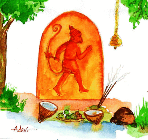 హనుమంతుని గుళ్లలో విగ్రహానికి పండు నారింజ రంగులో సింధూరం పులిమి ఉంటుంది- గమనించారా? దాని వెనక ఓ కథ ఉంది.