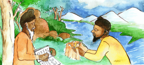 ఒక గంట తర్వాత రఘునాథ్ ఒట్టి చేతులతో వెనక్కి తిరిగివచ్చాడు. ఆయాసంతో వగరుస్తున్నాడు; తలనుండి పాదాలవరకు తడిసిముద్దై ఉన్నాడు. వచ్చి, గురూజీకి దగ్గర్లో చేరగిలపడి "నదిలో అంతా వెతికాను కానీ ఆ బంగారు మురుగు మాత్రం దొరకలేదు గురూజీ! ఖచ్చితంగా ఎక్కడపడిందో చూపించారంటే, నేను మళ్లీ ఇంకోసారి దిగి, అది దొరుకుతుందేమో చూస్తాను" అన్నాడు.