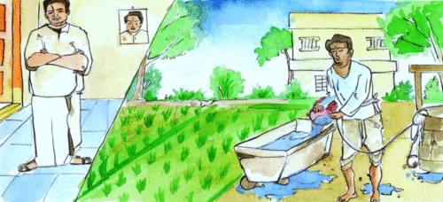 "మా తమ్ముడికి జ్వరం వచ్చిందయ్యా, అందుకని, వాడి బదులు నేను వచ్చాను, పనికి" అన్నాడు మారన్న, తెచ్చిపెట్టుకున్న వినయంతో. "సరే, పోయి తొట్లనిండుగా నీళ్లు తోడిపోసి, ఆ తరువాత ప్లేటునిండా అన్నం పెట్టించుకొని తిను!" అన్నాడు షావుకారు.