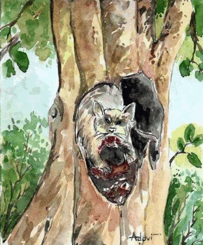 ఆ తర్వాత పిల్లి గుడ్డి గద్దకు చాలా దగ్గరైంది. కొన్నాళ్లకు అది ఆ గద్దతోబాటు దాని తొర్రలోనే నివసించటం కూడా మొదలుపెట్టింది.