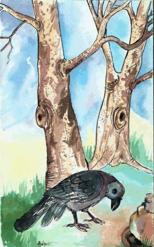 “ఈ గ్రద్దే మన పిల్లలందర్నీ తినేసింది" అని నిశ్చయించుకుని, ఆ పిట్టలన్నీ గ్రద్దను తమ గోళ్లతో రక్కి, ముక్కులతో పొడిచి-పొడిచి చంపేశాయి! -అందుకనే, `కొత్తగా వచ్చిన వాడిని నమ్మకూడదు' అన్నాను,'" అన్నది కాకి - జింకతో. అప్పుడు నక్క కోపంగా ఇలా అన్నది- (..తరువాయి వచ్చే మాసం)