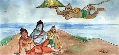 కానీ సంజీవని అన్ని చోట్లా పెరగదు. కేవలం హిమాలయాల్లోనే దొరుకుతుంది. అంత దూరం నుండి లంకకు ఆ మూలికను తేవాలి. -అదీ సూర్యోదయంలోగా! అసంభవమైన ఈ పనిని ఇంకెవరు చేయగలరు, పవన పుత్రుడు హనుమంతుడు తప్ప?!