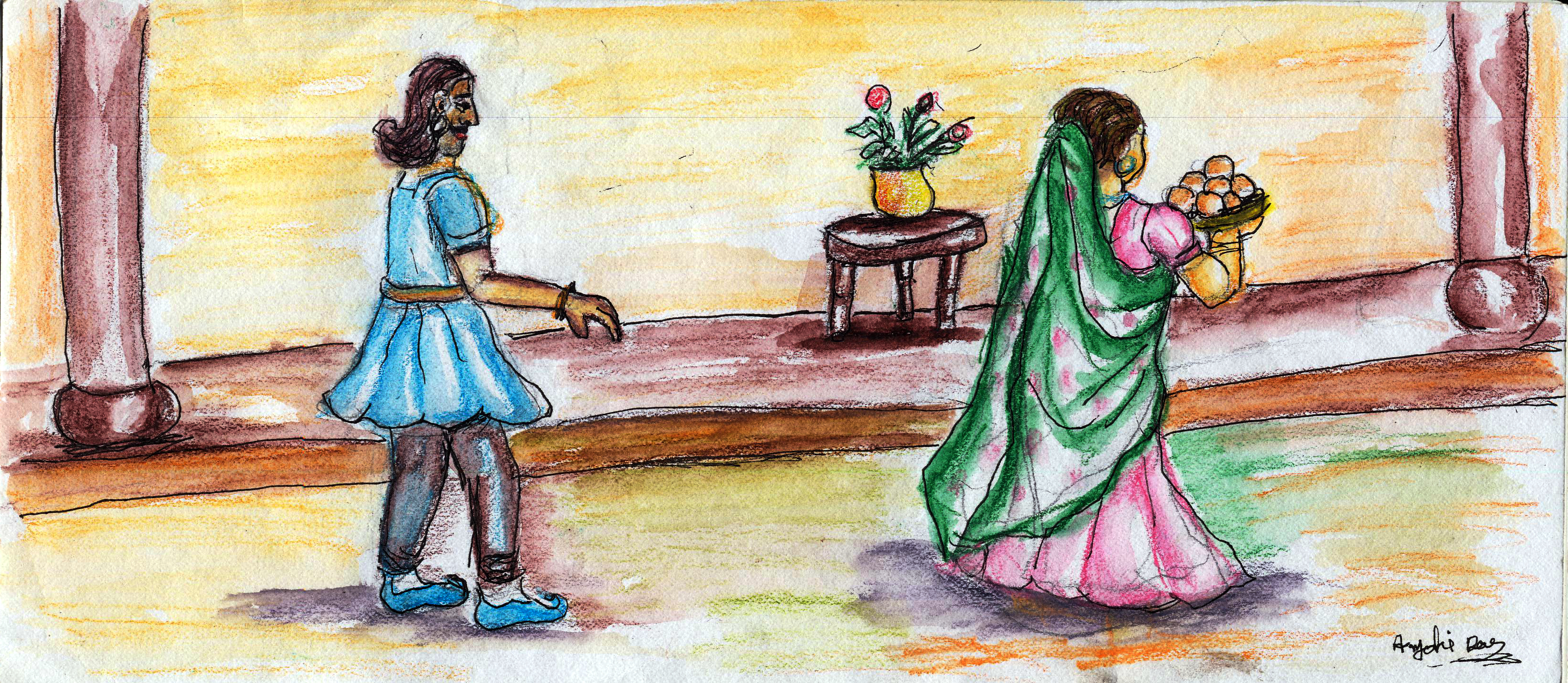 ఇక ఉదయాన్నే వేరొక దాసీ వచ్చి సీతమ్మను నిద్ర లేపింది. ఆమె పరుపు మీద అంతా రక్తపు మరకలు! వాటిని చూసి ఆమె భయపడి, "అయ్యో ,అయ్యో! ఎంత ఘోరం జరిగిందో చూడండి, ఎంత రక్తమో!" అని అరిచి అందరినీ పిల్చింది. అందరూ వచ్చి "ఏమైంది ఏమైంది?" అని అడగారు. సీతమ్మకు ఏం చెప్పాలో తోచలేదు- "నా ముక్కును యువరాజుగారు కొరికేశారు" అని భోరు-మన్నది ఆమె.
