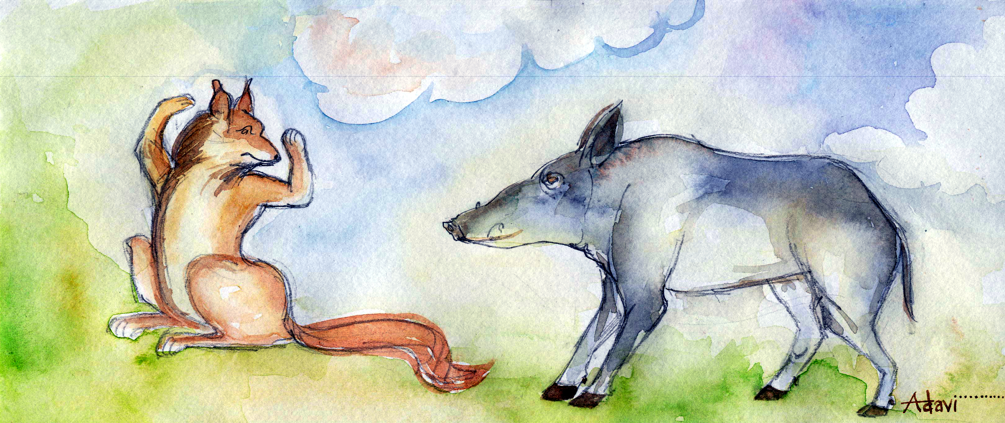 ఒక అడవిలో ఒక నక్క -ఒక పంది జతగా ఉండేవి. అడవిలోని జంతువులన్నీ నక్కనూ, పందినీ తమ రాజులుగా కొలిచేవి. మామూలుగా అవి రెండూ అడవిలోనే కలిసి మేత మేస్తుండేవి. అయితే ఒకనాడు నక్కరాజు-పందిరాజు మేతను వెతుక్కుంటూ ఒక ఊరివైపుకు పోయాయి. పోయి -పోయి, అవిరెండూ ఊరి ముందర్నే ఉన్న తోటలోకి వెళ్ళాయి. అక్కడ ఆ రెండింటికీ కావలసినంత ఆహారం దొరికింది. ఆరోజు తోటలో వాటికి దొరికిన ఆ ఆహారం చాలా రుచికరంగా ఉంది; అంతేకాక అది కుప్పలు తిప్పలుగా ఉన్నది కూడా. అటు తర్వాత నక్కరాజు-పందిరాజు ప్రతిరోజూ ఆ తోటకే వెళ్ళి కడుపునిండా మెక్కటం మొదలుపెట్టాయి. ఇలా కులాసాగా నడుచుకుంటూ తోటకు వెళ్ళడం-అక్కడ కావలసినంత మెక్కటం - ఆ పైన ఇంటికి పోయి పడుకోవటం- ఇది రోజువారీ పనయింది మిత్రులిద్దరికీ.