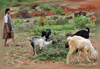 (ఫొటో : 'ది హిందూ' 07-07-2010,”A child at work!”బడి లంచ్ సమయంలో గొర్రెలు కాస్తున్న ఓ పాప )
