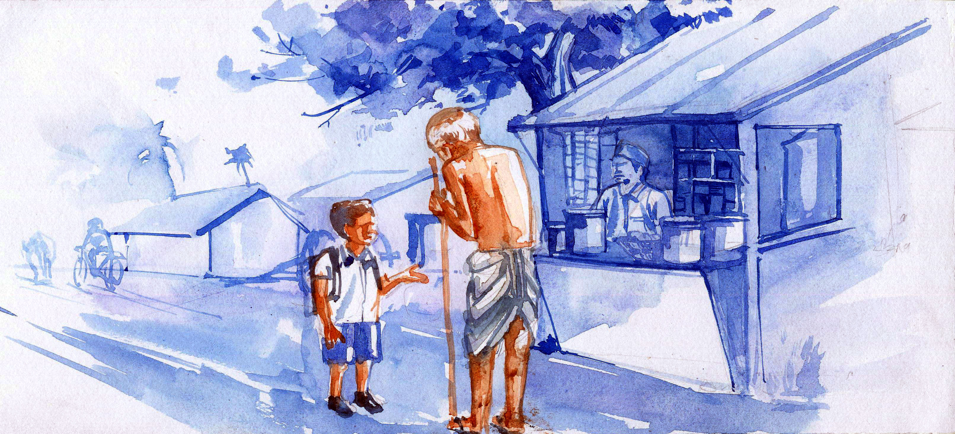 దుకాణంలో శెట్టి "పోనివ్వండి స్వామీ, అతి తెలివి పిల్లాడు- వాడితో మీకెందుకు?" అన్నాడు ముసలాయనతో.