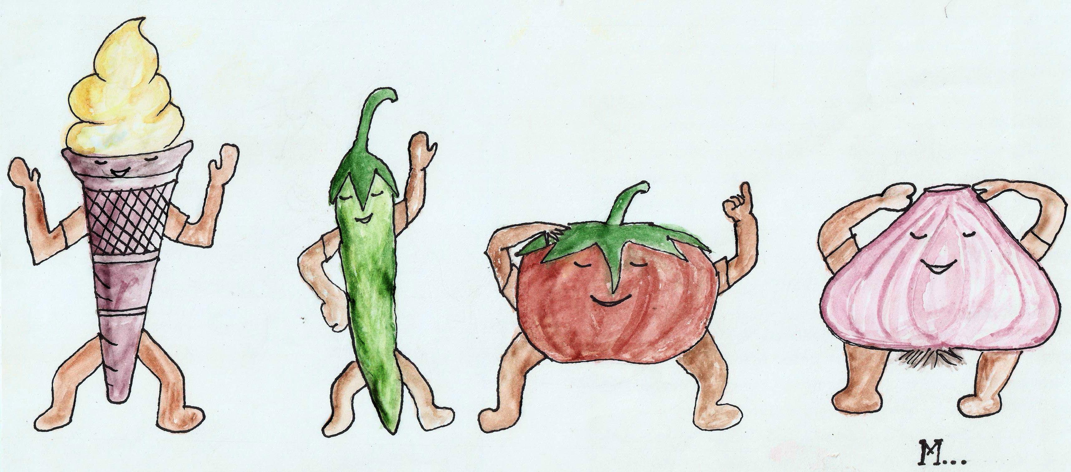 అనగా అనగా ఒక ఊళ్లో ఒక మిరపకాయ, ఐస్క్రీమ్, ఉల్లిగడ్డ, టమోటా చాలా స్నేహంగా ఉండేవి.
