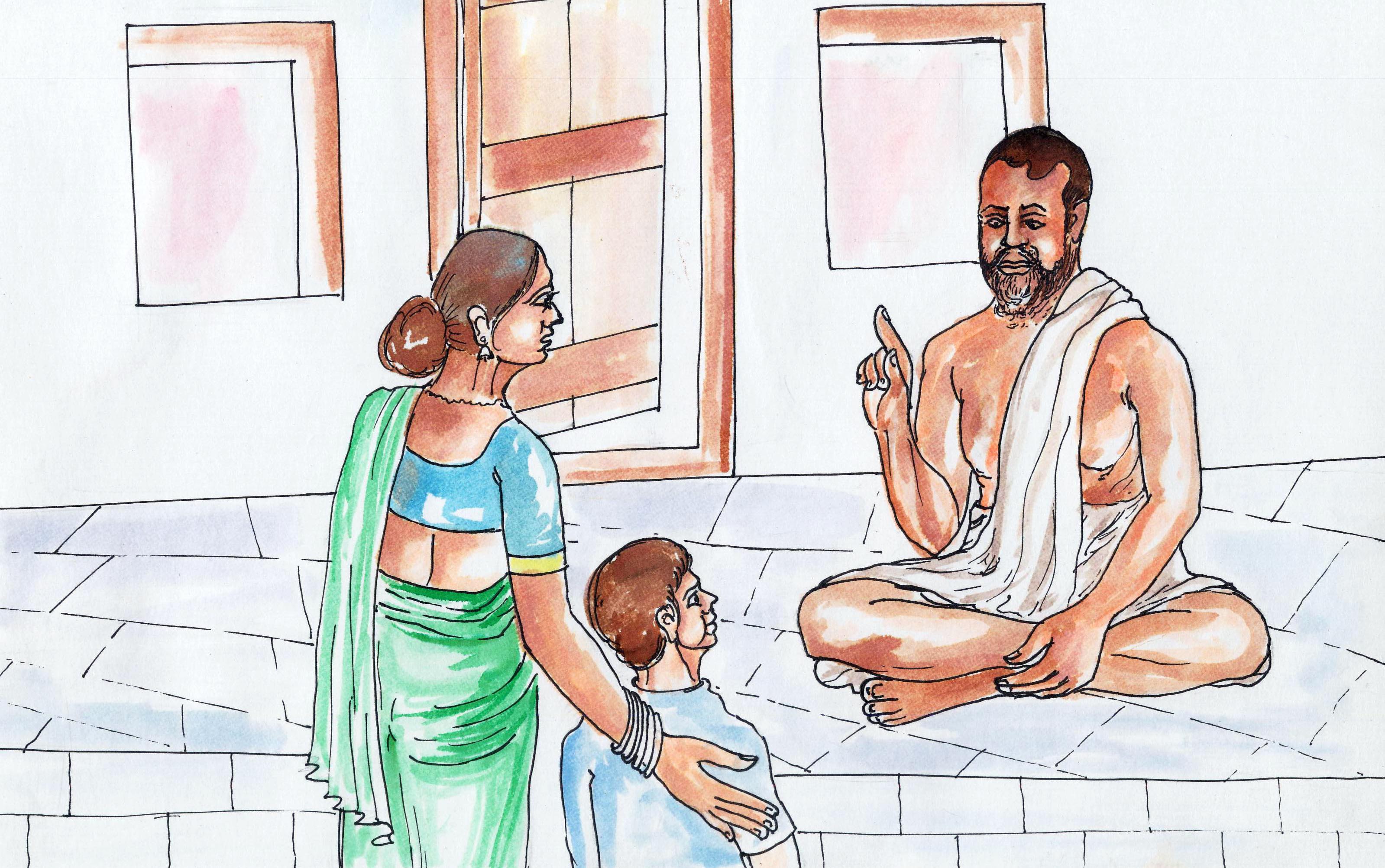తల్లి పదిహేను రోజుల తరువాత మళ్లీ తీసుకెళ్లింది కొడుకును. రామకృష్ణుడన్నాడు- "అయ్యో! ఇప్పుడే ఏమీ చెప్పేట్లు లేదు తల్లీ! ఇంకొక పదిరోజులాగి రండి" అని.