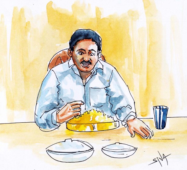 'సరేలే, ఇప్పటికి ఈ ఆట చాలు. ఆకలి బాగావేస్తోంది. అన్నం తిందాం' అని అన్నం పెట్టుకొని తినబోయాడు. ముద్ద నోటిని చేరేలోగా బంగారు ముద్ద అయిపోయింది! బంగారాన్ని ఎవరైనా ఎట్లా తింటారు?