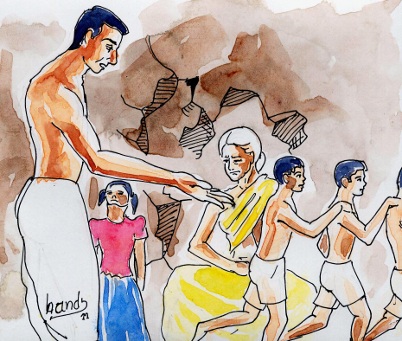 "అయ్యో, నాదగ్గర తినేందుకు ఏమీ లేవు తాతా, రెండు కాసులు మాత్రంఉన్నై, తీసుకో- ఇవి నీకేమైనా ఉపయోగపడతాయేమో చూడు"అని విజయ్ తన దగ్గర ఉన్న రెండు కాసులనూ ఇచ్చేశాడు బిచ్చగాడికి.