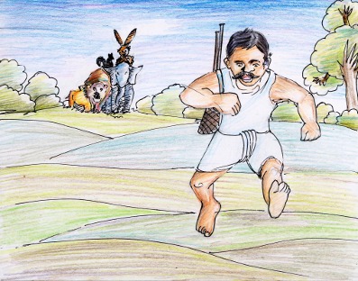 అంతలోనే వేటగాడు ప్రేలుడు పదార్థాన్ని పేల్చేశాడు. ఆ ప్రేలుడుకు వంతెన అంతా కుప్ప కూలి పోయింది.