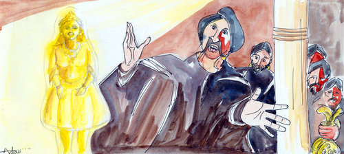 తన కూతురి గుర్తుగా ఆయన ఒక బంగారు విగ్రహం తయారు చేయించాడు. కొంత మంది గజదొంగలకు ఆ విషయం తెలిసింది. ఎలాగైనా దాన్ని దొంగిలించాలనుకున్నారు వాళ్ళు. ఆ రోజు రాత్రి ధైర్యంగా రాజభవనంలోకే ప్రవేశించారు. దొంగలు రావచ్చని కూడా ఊహించని రాజభవనం అంతా నిద్రలో మునిగి తేలుతున్నది. దొంగలు బంగారు విగ్రహం కోసం మెల్లగా కోటలో అంతా వెతికారు.