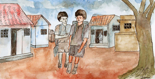 వాడు వినోద్ ని చూసి నవ్వుతూ "నా పేరు శీను. మేము ఈ వీధిలోకి కొత్తగా వచ్చాం. నేను కూడా మీ బడిలోనే చదువుతున్నాను!" అని చెప్పాడు. శీను వేసుకున్న నలిగిపోయిన బట్టలు, అరిగిపోయిన చెప్పులు వినోద్ కి ఏమాత్రం నచ్చలేదు.