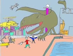 ఏం జరుగుతోందో చూశారా? డైనోసార్లు! వచ్చేశాయి, నగరం మీదికి! చెల్లేమో, డైనోసారు ముందుకు వెళ్ళి దాన్ని ఆపేందుకు ప్రయత్నిస్తోంది, చేతులు చాపి. అన్న ఒక చిన్న తుపాకీ పట్టుకొని, మరి ఎటు తిరిగి ఉన్నాడోగాని, ఉన్నాడు. హెలికాప్టర్లు, క్రేన్లు, పవర్ హోలు- అన్నీ వచ్చేసినై, అప్పుడే- లేకపోతే విధ్వంసాన్ని ఆపేదెలాగ? మీకు ఆ కథ తెలుసు కదూ, రాసి పంపించండి. మీ కథ బాగుంటే దాన్ని మే మాసపు కొత్తపల్లి పత్రికలో ప్రచురిస్తాం.