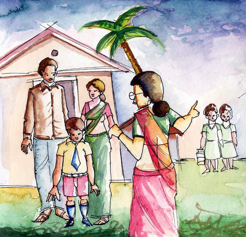 అంతలో అటువైపు వచ్చిన వాళ్ళ సారు "వీడు ఎప్పుడో తప్పాల్సింది- చాలా అతి చేస్తున్నాడు బడిలోనూ, హాస్టలులోనూ. మీకు ఎన్నిసార్లు చెప్పినా మీరూ పట్టించుకోలేదు. అందుకే ఈపరిస్థితి. ఇప్పుడు వాడిని ఏదోఒక పనిలో పెట్టాల్సిందే!" అన్నారు. ఆడపిల్లల్నిద్దరినీ ఆయన దగ్గరికి తీసుకొని, చాలా మెచ్చుకున్నాడు- "మీరు ఇంకా బాగా చదవండమ్మా! మీ చదువులకయ్యే ఖర్చుని నేను భరిస్తాను- మీ తల్లిదండ్రులకు ఎలాగూ బుద్ధిలేదు" అన్నారు సారు. ఆయన మాటలు విన్నాక వాళ్ళ అమ్మానాన్నల కళ్ళు తెరుచుకున్నాయి. ఆనాటినుండీ తమ పిల్లల్ని అందరినీ సమానంగా చూసుకున్నారు.
