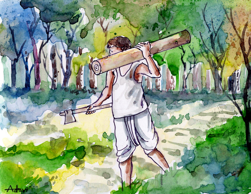 ఒక పట్టణంలో మంచి వడ్రంగి ఒకడు ఉండేవాడు. అతను అవసరం పడ్డప్పుడల్లా అడవికి వెళ్లి, తన పనికి సరిపోయే చెట్టును నరికి, స్తంభం మాదిరి చెక్కి, ఊరికి తీసుకు వచ్చి, దానితో రక రకాల వస్తువులు చేసి, అమ్ముకొని జీవిస్తూ ఉండేవాడు.