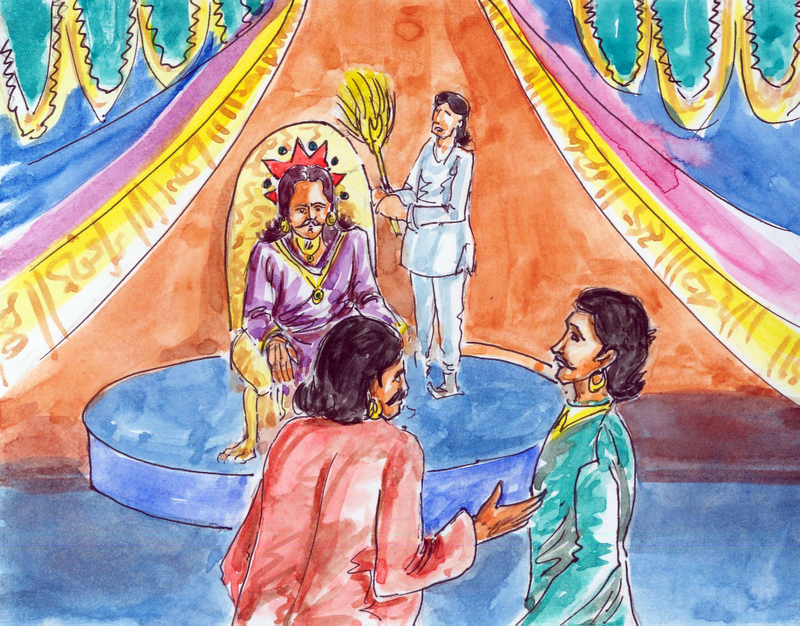 రాజుగారు న్యాయాధికారులను రప్పించి వాది-ప్రతివాదులను వాళ్ళకు అప్పగించాడు. "వీళ్ళ తగవును పరిష్కరించండి" అని ఆదేశించారు.