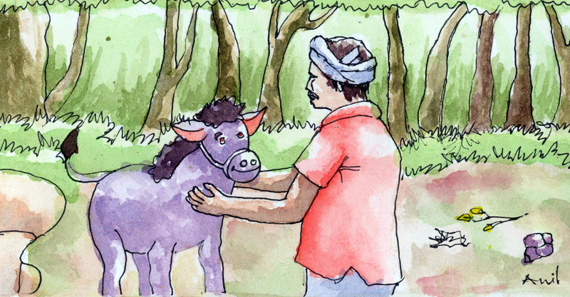 అనగా అనగా ఒక ఊళ్లో రంగయ్య అనే చాకలి ఒకడు ఉండేవాడు. అతని దగ్గర ఒక మంచి గాడిద ఉండేది. రోజూ చాకలి తన మీద మోపే బరువులన్నిటినీ, ఎంత కష్టమైనా సరే, అది మోసేది. రంగయ్య కూడా చాలా శ్రమపడి పని చేసేవాడు. అయితే కాలం ఎవ్వరికోసమూ ఆగదు కదా! రాను రాను గాడిద ముసలిదైంది. ఇప్పుడు అది ఇదివరకటంత వేగంగా పని చెయ్యలేకపోతున్నది. రంగయ్యకు ఇప్పుడు అదంటే కొంచెం విసుగు వేస్తున్నది. కొంచెం అసహనంగా ఉంటోంది దాని నెమ్మది తనాన్ని చూసి.