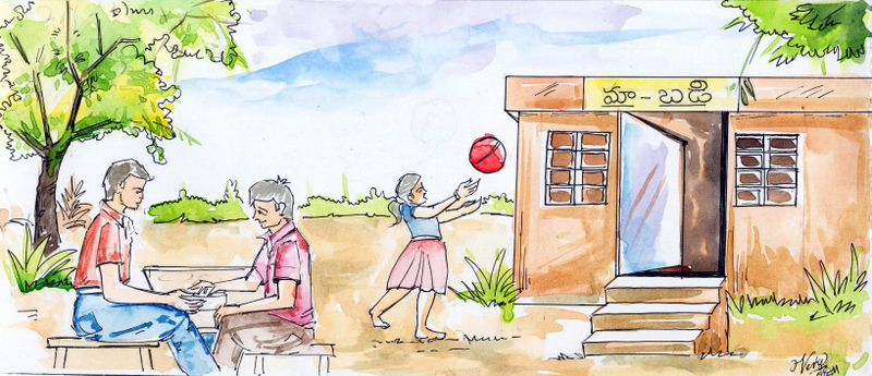 నేను ఇంకా మా పాతబడి గురించిన ఊహల్లోనే ఉన్నాను, కానీ నిజానికి ఈ బడి కూడా బాగానే ఉన్నట్లుంది... నీడనిచ్చే చెట్లున్నై, చాలా. గాలి చల్లగా, బాగుంది. వాతావరణం హాయిగా ఉంది.