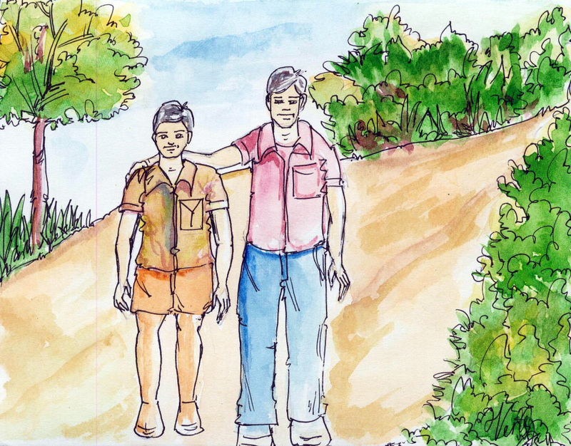 చివరికి బడి గంట కొట్టగానే అందరం పుస్తకాలు సర్దుకొని బయటికి పరుగెత్తాం. బడి బయట మా నాన్న నిలబడి ఉన్నాడు- "అంతా బానే ఉందా?" అని ఆదుర్దాగా అడిగితే బొటనవేలు పైకెత్తి నవ్వుతూ అన్నాను- "మస్తు ఉంది!" అని.