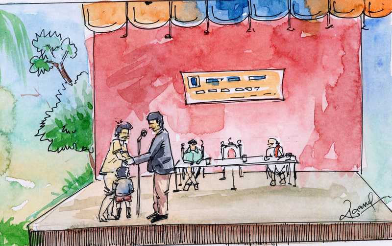 సభలో ఆయన కున్నిముత్తు వాళ్ళ నాన్న గురించి చాలా గొప్పగా మాట్లాడాడు. "పాపం, బాబు చాలా చిన్నగా ఉన్నప్పుడు వాళ్ళ అమ్మ పోయింది. అప్పటి నుండి అన్నీ తనే అయి బాబును చాలా బాగా పెంచాడు. దాని కోసం చాలా కష్టపడ్డాడు. ఆయన చాలా గొప్ప మనిషి. కున్నిముత్తును టీచర్ల కంటే అతనే ఎక్కువ చదివించాడు..." ఇలా చెప్పేసరికి అందరికీ ఆశ్చర్యమయింది. అతనికీ నోట మాట రాలేదు. కలెక్టరుగారు అతన్ని పూల మాల వేసి అభినందించారు. దీంతో కున్నిముత్తు వాళ్ల నాన్న సిగ్గుతో కుంచించుకుపోయాడు. పూర్తిగా మారి-పోయాడు.