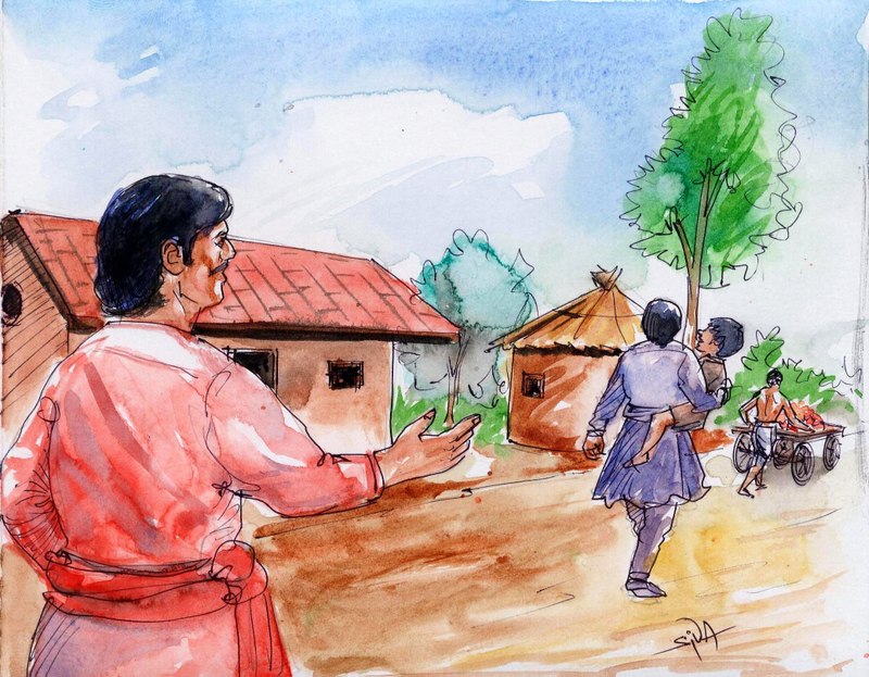 అప్పుడతను ఏడుపు గొంతుతో "నేనేం చేసేది! చంకలోఉన్న బిడ్డని క్రిందికి దించి పండ్లు బేరమాడటం మొదలు పెట్టానా? ఇంతలో ఎక్కడినుండి వచ్చిందో, ఓ పాడు గ్రద్ద, బిడ్డని ఉన్నవాడిని ఉన్నట్లు తన్నుకుపోయింది!" అన్నాడు.