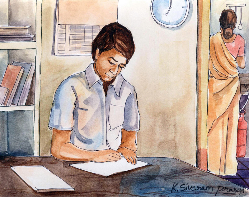 అందరూ ఇంటికి వెళ్ళిపోయినా, రమేష్ మాత్రం అట్టా-పేపరు ఒళ్ళో పెట్టుకొని కథ కోసం అలోచిస్తూనే ఉన్నాడు- ఎంత ఆలోచించినా మనసుకు నచ్చేట్టు ఒక్క కథా రావడం లేదు.