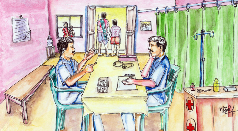 "పల్లెలో నా ప్రాక్టీసు బాగానే ఉంటున్నదే, మరి కిషోర్ దగ్గరికి ఎందుకు రావట్లేదు, రోగులు?" అని ఆశ్చర్యపోయాడు నరేందర్ . ఇంతలో ఎవరో ఒకతను ఎనిమిది సంవత్సరాల వయసున్న తన కొడుకుని తీసుకొని ఆందోళన పడుతూ ఆసుపత్రికి వచ్చాడు. "నా కొడుకు నిన్న మామిడి-కాయల కోసమని మంచి ఎండలో బయటకు వెళ్లాడు. రోజంతా బయట తిరగటం వలన కాబోలు, ఒళ్లు కాలిపోతోంది! రాత్రంతా నిద్రలేదు! బిడ్డపరిస్ధితి ఆందోళనకరంగా ఉంది. మీరే కాపాడాలి" అంటూ ప్రాధేయపడ్డాడు.