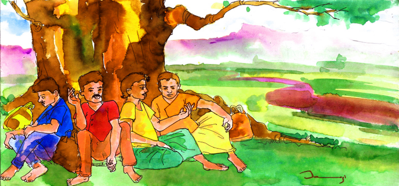 "ఏమి, ఈ నాలుగో కళాకారుడు ఏమీ చెప్పట్లేదు? ఈయన వేషం ఏంటి?" అడిగాడు నాగయ్య.