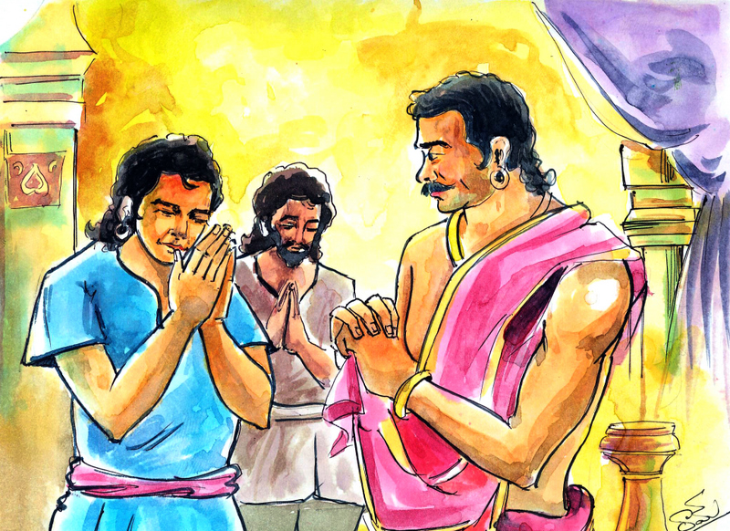 అందుకని మీరిద్దరూ ఇప్పుడు దేశాటన చేయాలి. దేశాటన అంటే ఊరికే గుర్రాలెక్కి దేశం అంతా తిరగటం కాదు- మీదంటూ ఏదో ఒక పల్లెను ఎంచుకొని, అక్కడ సామాన్యుల-లాగా ఒక సంవత్సరంపాటు జీవించాలి. ఆ సమయంలో మీరు నా కొడుకులనిగానీ, సంపన్నులని గానీ ఎవ్వరికీ తెలియకూడదు. వీలైనంత తక్కువ ఖర్చుతో బ్రతకాలి ఈ ఏడాది అంతా.