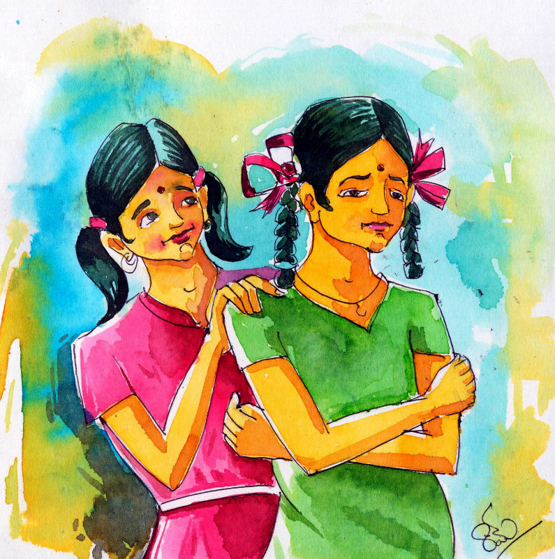 "నేను మీ యింటికి వస్తాను ఇవాళ్ల. రేపు నువ్వు రావాలి మా యింటికి- సరేనా?" అన్నది గీత సంతోషంగా. ఇప్పుడు వారిద్దరూ మళ్ళీ స్నేహితులైపోయారు. ఇద్దరూ శ్రద్ధగాకలిసి చదువుతున్నారు. తరగతిలో మొదటి మార్కు వాళ్లదే, ఈ నాటికీ!