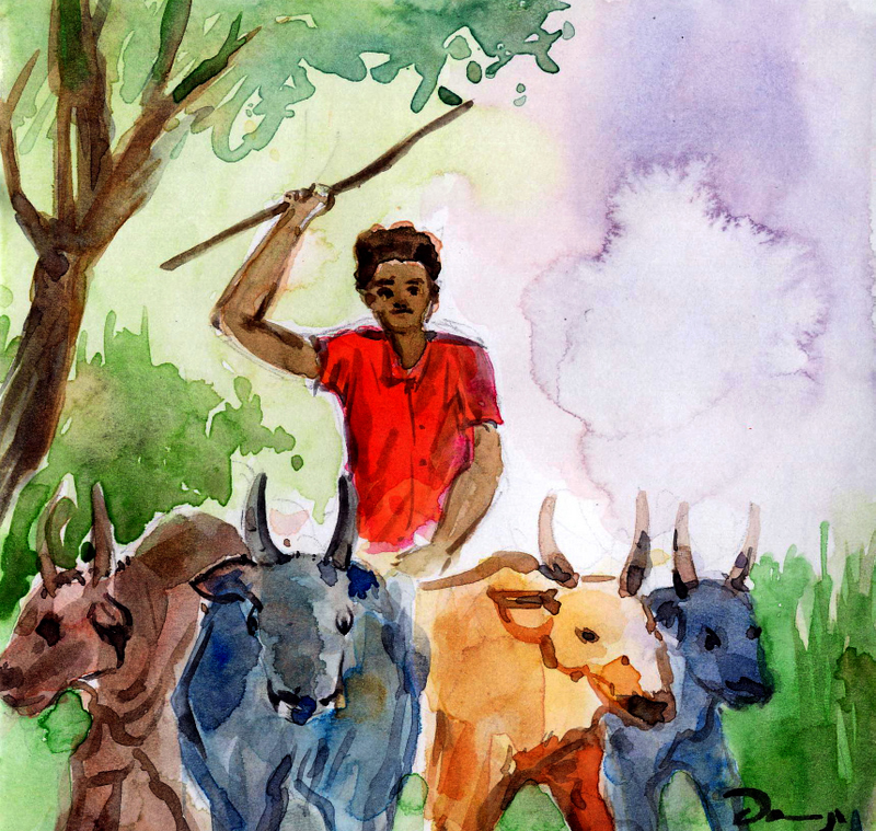రావులపాలెంలో ఉండే చంద్రయ్య చాలా వింత మనిషి . అతనికి ఐదు ఆవులు ఉండేవి. అయినా అతను మాత్రం వాటి ఆలనా పాలనా పట్టించుకునేవాడు కాడు. భర్తను ఏమీ అనలేని లక్ష్మమ్మ ఇరుగు పొరుగుల్ని ప్రాధేయపడి, వాళ్ల పొలాల నుండి రోజూ కాస్తంత గడ్డి తెచ్చి వేసి ఎలాగో ఒకలాగా ఆవుల్ని సాకేది. వాటి పాలు అమ్ముకుంటే వచ్చిన డబ్బులతోటే కుటుంబం గడిచేది.