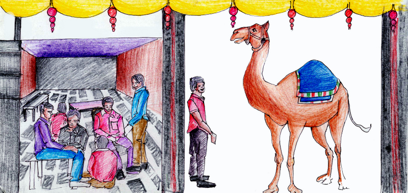 అయినా అది చుట్టూ ఉన్న వాళ్ళు అందరికీ వినబడింది. ఒంటె మాట్లడటం చూసి ముందు ఆశ్చర్యపోయారు అందరూ.