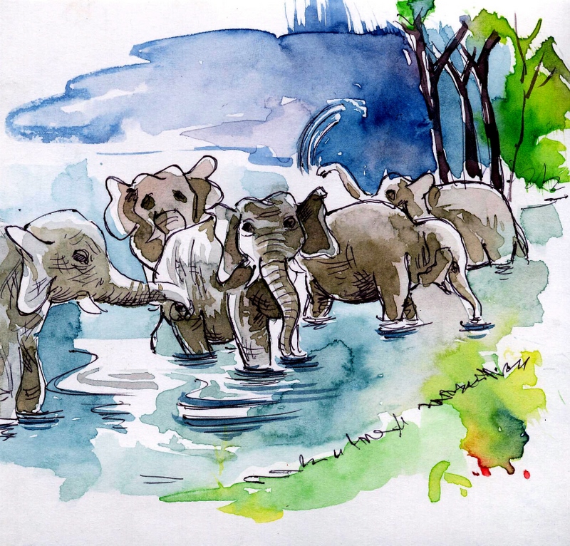 "ఈ ఏడాది వేసవి వేడివల్ల అడవి అందం అంతా చెదరిపోయింది. అన్ని చోట్లా వాగులు, వంకలు ఇంకబట్టాయి. దాంతో దాహం ఎక్కువైపోగా, మనసులు అల్లకల్లోలమై పోగా, ముఖాలు వాడిపోగా, ఏనుగుల గుంపులు నడిచివచ్చే కొండల మాదిరి బయల్పడ్డాయి. ఇప్పుడు అవి 'ఈ నేల మొత్తం యీనిందా' అన్నట్లు, అన్ని చోట్లా తామే అయి, పరుచుకొని ఉన్నాయి. వాటి పాదాల క్రింద పడి నలిగి చనిపోయిన మన కుందేళ్ల సంగతి విన్నప్పటి నుండీ నా మనస్సు తీవ్ర ఆందోళనకు గురవుతున్నది.